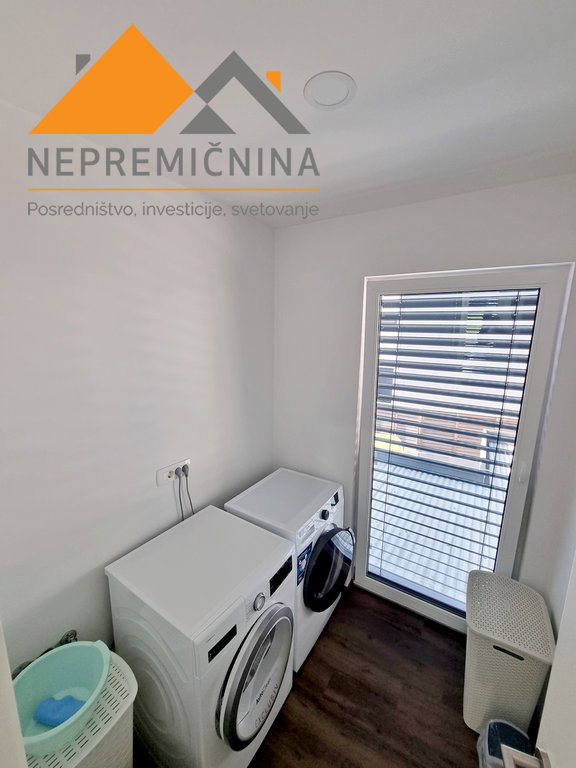 V nadstropju je pralnica ter dve veliki sobi, vsaka s svojo kopalnico