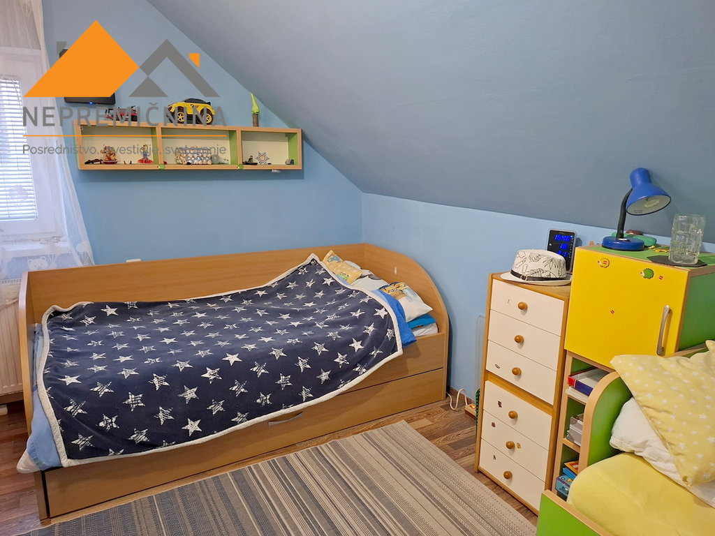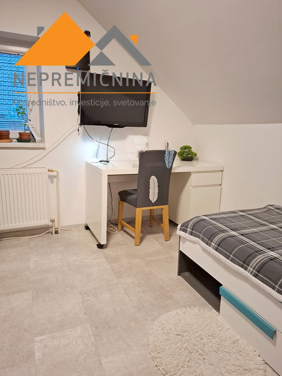 Hiša ima 120 m2 stanovanjske površini in v pritličju obsega hodnik, kuhinjo z jedilnico, dnevno sobo, kabinet, kopalnico in kurilnico. V nadstropju hiše se nahajajo tri sobe in kopalnica. Z manjšim posegom je možno v nadstropju izdelati samostojno stanovanje, saj priključki to omogočajo.