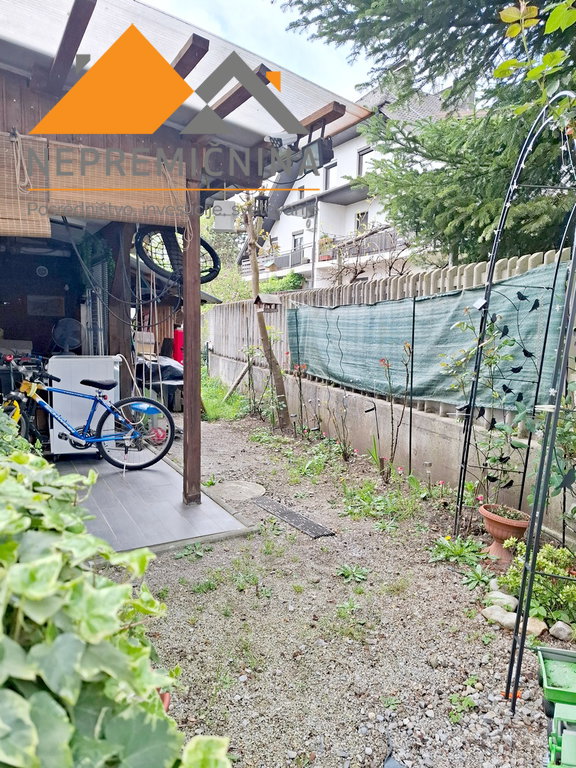 Pred hišo je asfaltirano dvorišče, kjer je možno parkirati tri avtomobile. Za hišo se nahaja terasa z letno kuhinjo in shrambo.